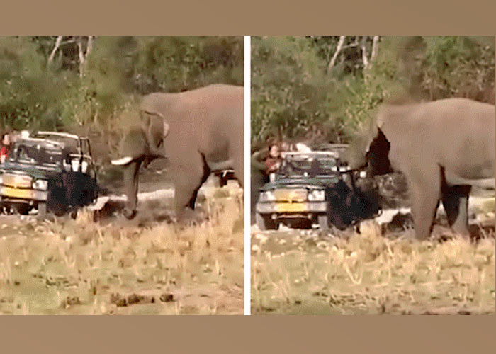 El animal al ver más de seis vehículos alrededor se sintió amenazado y tomó una acción defensiva. Mientras tanto, los turistas abordo de un carro intentaron tomarse selfies muy cerca del gigantesco animal y este reaccionó de la peor de las formas.