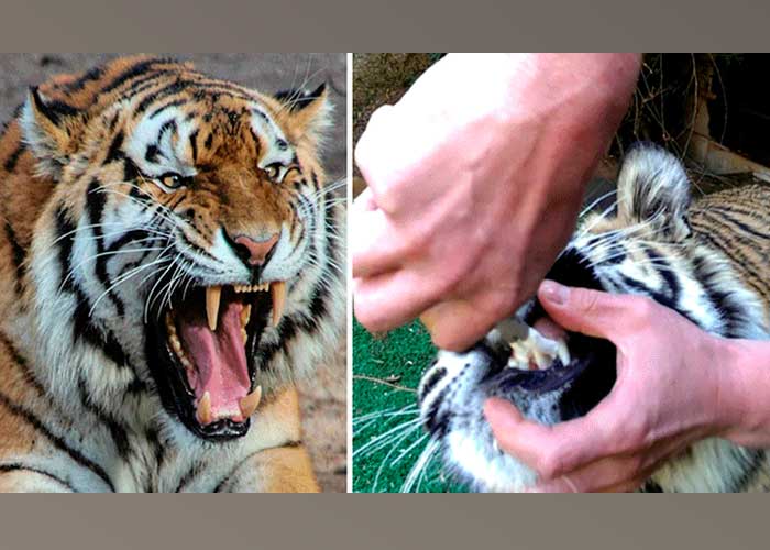En Facebook, un video viral muestra el preciso instante en que un médico veterinario ingresó a la jaula de un tigre para quitarle uno de sus afilados colmillos. El enorme depredador al sentir el fuerte dolor tuvo un comportamiento que asombró a miles de usuarios de México y otros países.