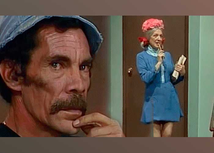 Esta querida pareja que fue interpretada por los actores, Angelines Fernández y Ramón Valdés actuaron una escena en que la ‘Bruja del 71’ dejó esa imagen de mujer recada y conservadora por lucir un corto vestido, cuando llegó de improviso a la 'escuelita' de ‘El Chavo’.