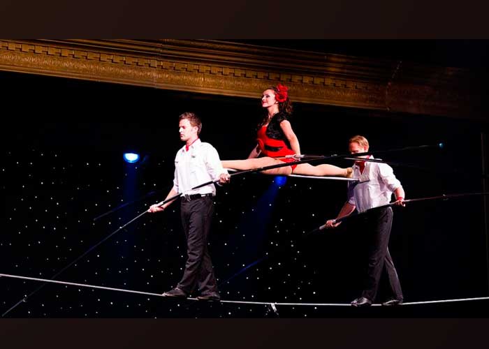 Rick Wallenda, que había realizado el acto de la pirámide en el pasado, dijo a Fox News, “Las cuatro personas en el cable, tienen que estar sincronizadas en sus pasos”.