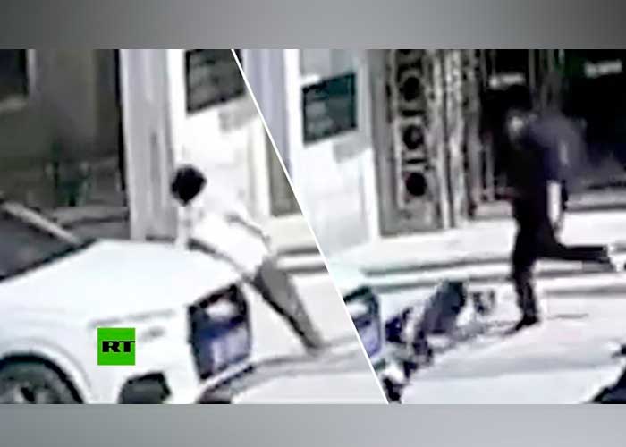 Víctima de atropello y, encima, de una brutal paliza. Así le ocurrió a una sexagenaria empleada de la limpieza que caminaba este martes con su escoba y recogedor en un distrito de Jiangsu, en China. Un coche aparece de la nada y se la lleva por delante. Cuando se dispone aparentemente a denunciar lo sucedido usando su celular, llega la pareja a bordo del auto y comienza a golpearla sin piedad, informan medios chinos.