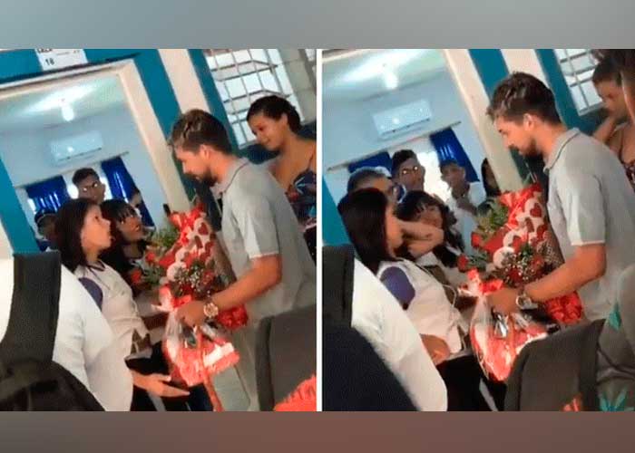 Tal como muestran las escenas del video viral, una chica fue abordada por un hombre que tenía en las manos un ramo de flores y presuntamente, una caja de chocolates. El joven le declaró su amor, pero ella movió la cabeza negando que aceptaría los obsequios.