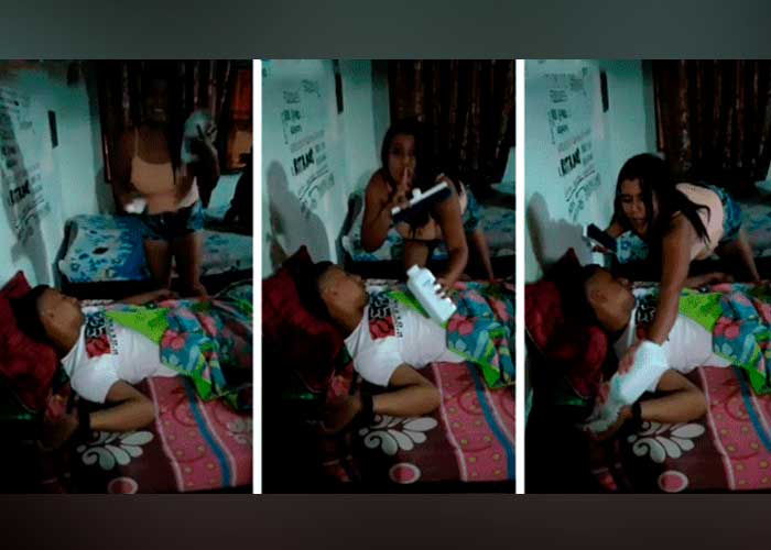 Con ayuda de la aplicación ‘Tik Tok’ se grabaron las imágenes para Facebook, que permite colocar música de fondo. Por ello, el momento que le cayó el talco a la joven, se escucha una canción triste.