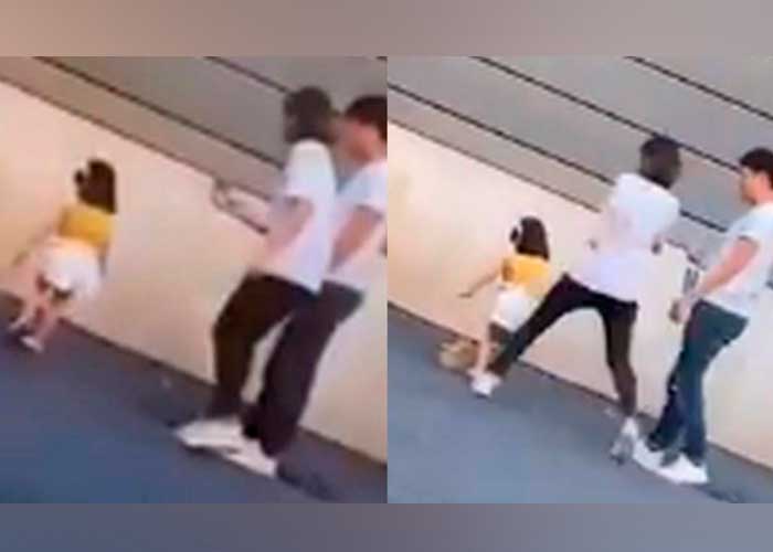 Tal y como muestran las imágenes de Facebook, la madre de Niu Niu patea por la espalda a la pequeña. Luego, quien parece ser un asistente, le acomoda la ropa a la menor para continuar con la sesión.