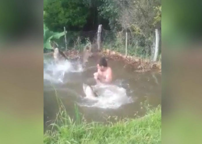 A través de unas imágenes que han dado la vuelta al mundo. Los usuarios de Facebook, se han mostrado asombrados al ver la insólita escena registrada en video y protagonizada por un hombre que se animó a introducirse en un pequeño estanque ubicado en Brasil.
