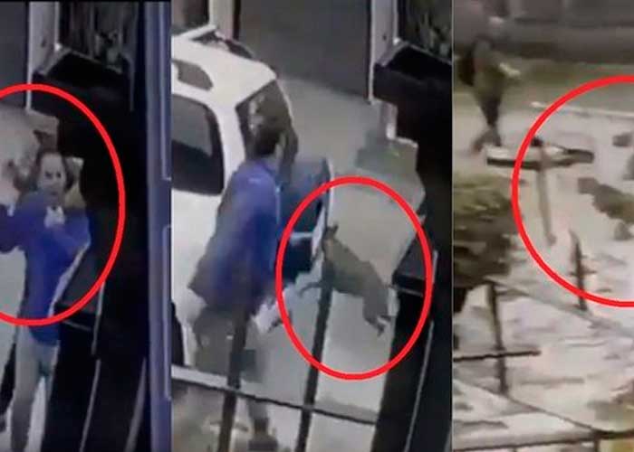Uno de los delincuentes lo agarró del cuello y le apuntó con una pistola en la sien, mientras la víctima forcejeaba para liberarse de los atacantes.
