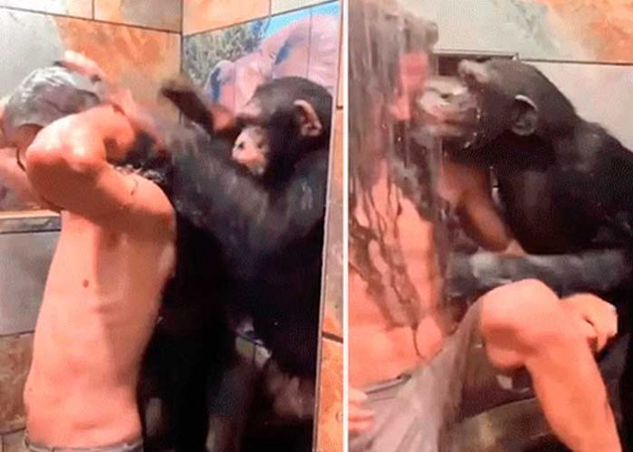 Un video viral compartido en Facebook mostró el preciso instante en que un hombre es ayudado por un par de chimpancés a lavarse su larga cabellera en la ducha. El peculiar incidente provocó que miles de internautas queden sorprendidos con la enorme amistad que existe entre ambas especies.