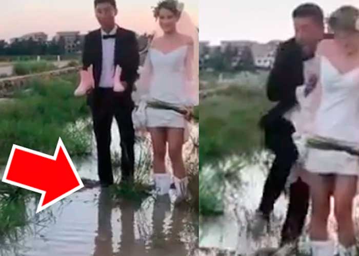 ¿Qué ocurrió? Lo que sería un romántico momento para los protagonistas del video viral de YouTube, se convirtió en uno aterrador por la peligrosa criatura que salió del río en el momento en que los novios posaban para las fotos de su matrimonio.