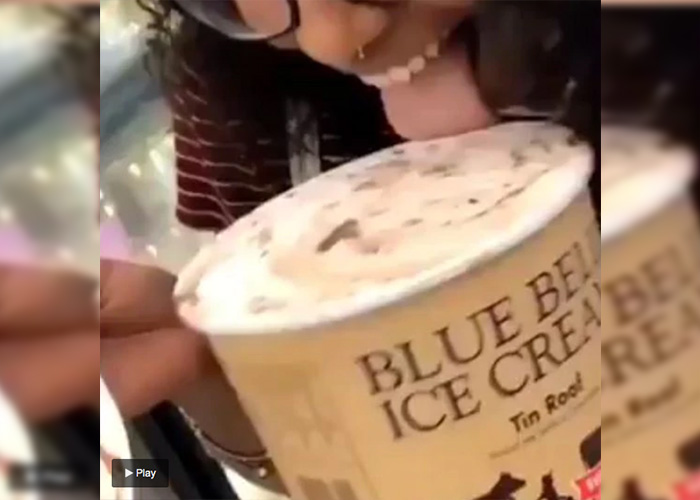 El video, que se hizo viral en redes sociales, muestra a una chica, aún no identificada, pasar su lengua sobre el helado de la marca Blue Bell Creameries, para luego colocar el postre dentro del refrigerador.
