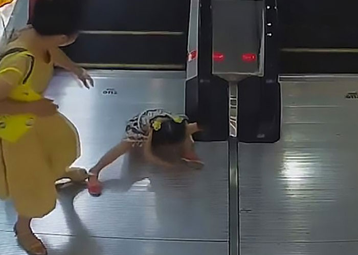 El brazo de una niña fue tragado por una escalera mecánica en China después de que olvidó soltar el pasamanos.