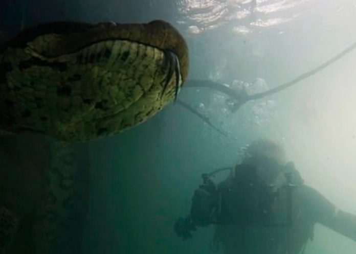 La agencia NewsFlare difundió un vídeo de unos buceadores que consiguieron grabar a una gigantesca anaconda que nadaba en las profundidades del río Formoso, en Brasil.