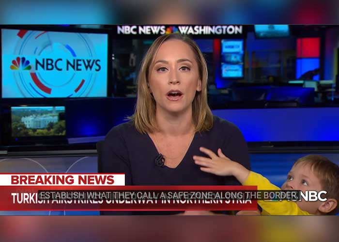 Un niño de cuatro años interrumpió a su madre, quien es presentadora de noticias de la cadena estadounidense NBC, mientras analizaba en vivo la situación creada por la ofensiva militar de Turquía contra las milicias kurdas en el norte de Siria. El video del hecho es viral en YouTube.