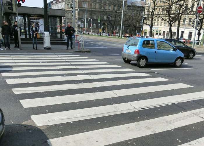 En las imágenes captadas a inicios de diciembre se puede ver cómo el vehículo continúa avanzando mientras los peatones cruzan. En cuestión de segundos, el auto impacta contra ambos y los lanza un par de metros por delante.
