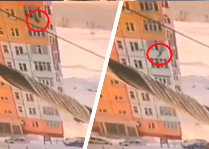 Un terrible accidente fue captado por una cámara instalada en una calle de la ciudad de Izluchinsk, Rusia, donde una mujer sufrió una aparatosa caída desde un noveno piso de un edificio, se levantó y se fue caminando muy campante como si nada hubiese ocurrido.