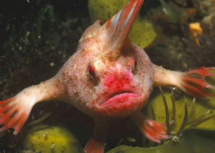 Se trata del pez de “manos rojas” o Thymichthys Politus, una especie de pez muy extraña, que se creía extinta, y que vive en Tasmania, Australia.