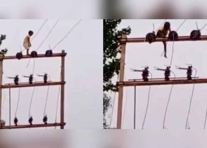 Un niño de cinco años protagonizó un arriesgado incidente al ser grabado en lo alto de una torre eléctrica en la ciudad de Jajpur (India), mientras jugaba con su hermana.