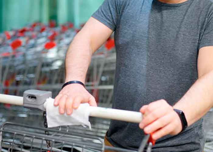 An employee at a FreshCo supermarket in Toronto 'spit shines' grocery baskets and carts with the same rag. The disgusting act was released on Thursday. #coronavirus pic.twitter.com/4iedjp6sxx