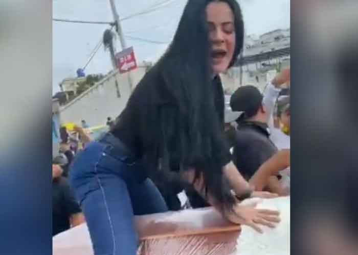 Una mujer se volvió viral en las redes sociales por “perrear” sobre el ataúd de una persona sin vida, mientras era trasladado hacia algún recinto, la chica, de origen colombiano, se subió al féretro para mover las caderas al ritmo de una famosa canción de reguetón.