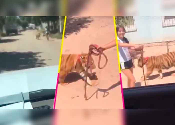 En el material audiovisual se ve a una niña de aproximadamente 13 años pasear a un tigre de bengala por calles de Guasave, Sinaloa en México. Llamó la atención la serenidad del animal, que camina junto a ella como si de un perrito se tratara.