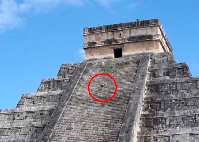 Mujer esparce cenizas de su esposo en la pirámide Chichén Itzá de México