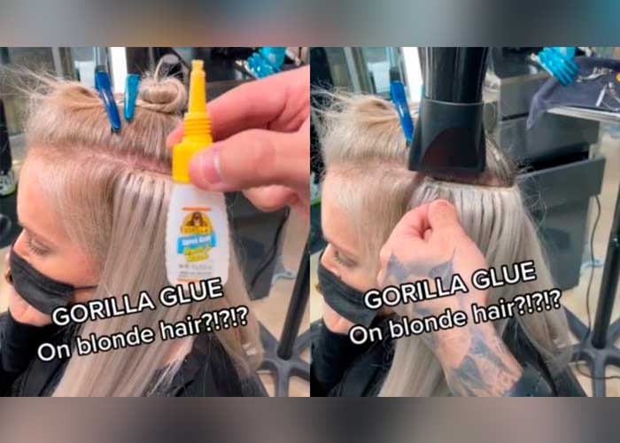 En un vídeo de TikTok, el peluquero ha enseñado cómo utiliza el pegamento en su trabajo. "He estado usando Gorilla Glue durante años, pero esta es la única forma en que debes usarlo", cuenta, colocando el producto sobre los mechones artificiales de una joven, y tratando de no tocar su melena natural.