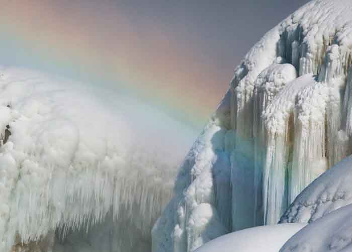 Breathtaking views of an ice-covered Niagara Falls when a rainbow appeared over the skies pic.twitter.com/1A06BET7ZO