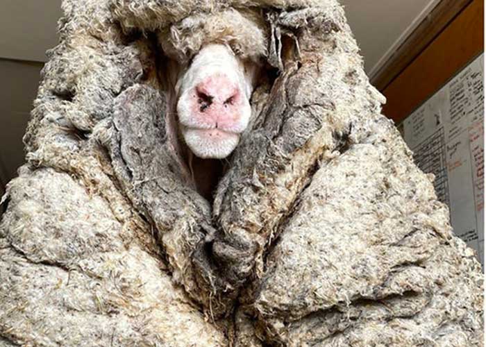 Encuentran una oveja salvaje con más de 35 kilos de lana encima que le impedía ver
