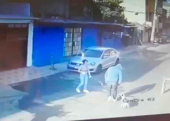 En redes sociales difundieron el video en el que se observa a la joven saliendo de su domicilio con su perro, cuando de repente un sujeto de sudadera azul y pantalón gris se lanza contra ella, tirándola en la banqueta justo afuera de su puerta, al parecer pretendía despojarla de sus pertenencias.