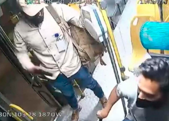 En el video, captado por cámaras de seguridad y difundido en redes sociales, se observa cuando un sujeto vestido de color caqui y pantalón de mezclilla sube al camión y paga su pasaje, segundos más tarde se sienta cerca del conductor, pone su mochila frente a él y saca una pistola.