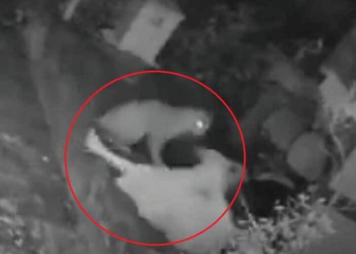 La grabación fue captada por cámaras de vigilancia ubicadas en el patio trasero de una vivienda, luego de que el enorme animal se colara al inmueble y se ocultara detrás de las plantas para posteriormente atacar a la mujer, quien en ese momento se encuentra sola e indefensa.