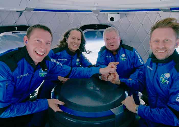 Shatner, famoso por su papel de capitán Kirk en ‘Star Trek’; la serie de ciencia ficción de los años 60, fue captado junto con los cuatro miembros de la tripulación flotando en ingravidez con asombro y emoción mientras observaban el planeta.