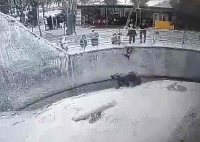 Uno de los osos que se encontraba en la jaula rápidamente se acercó para ver que era lo que había caído; pero después de olfatear el cuerpo de la menor se alejó sin hacerle daño.