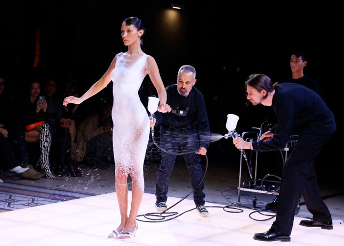 La modelo estadounidense Bella Hadid junto a la firma de moda Coperni, deslumbraron a los asistentes durante la Semana de la Moda de París cuando crearon en medio de la pasarela y sobre el cuerpo de la modelo un vestido con aerosol en tiempo real.