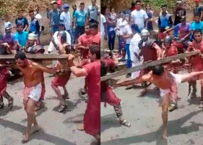 En Semana Santa se vio de todo, 🥴 en un Viacrucis un romano azotador se metió de lleno en el personaje y quién representaba a Jesús reacciona dándole patadas tras sentir muy fuerte los latigazos pic.twitter.com/zhYAHjEuli— Nuestra Gente GT (@NuestraGente_GT) April 18, 2022