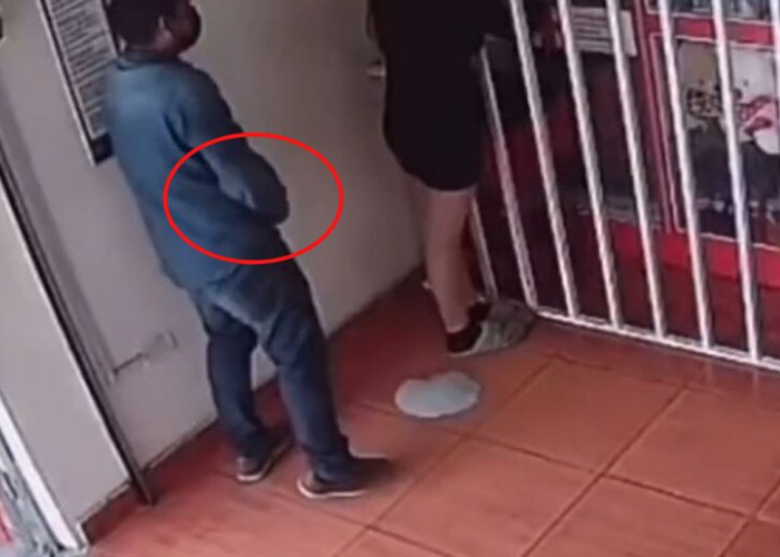 Un hombre se masturba y eyacula encima de una joven que se encuentra distraída; el momento quedó registrado por cámaras de seguridad, en el que se puede observar como la mujer se encuentra distraída y de espalda, mientras el acosador callejero se toca mientras la chica se encuentra comprando en una tienda.