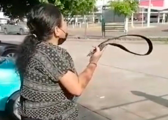 “Vengan para acá, yo no estaba jugando. Roberto, ven para acá, me va a dar un infarto si no me haces caso”, grita la mujer mientras sostiene la faja en su mano.