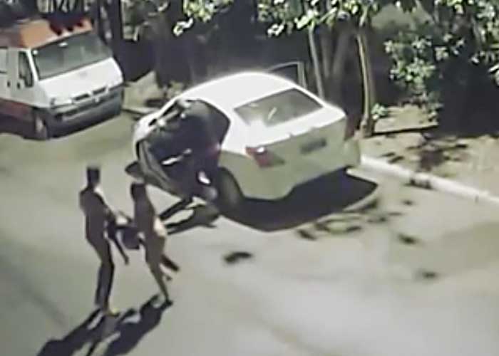Fueron las cámaras de seguridad de una vivienda las que evidenciaron el momento cuando la pareja se encontraba teniendo sexo en el interior de su auto blanco; cuando de un momento a otro aparecieron 3 ladrones y los obligaron a bajarse de su carro.