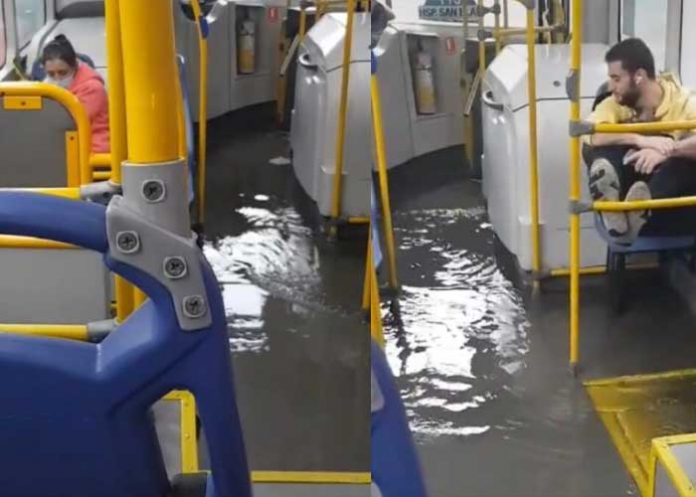 En el video, el usuario que utilizó el servicio documentó cómo se inundó el bus en medio de un torrencial aguacero. En una primera parte, el bus se ve limpio, pero cuando empiezan las fuertes lluvias; el agua atraviesa el techo del vehículo e inunda todo.
