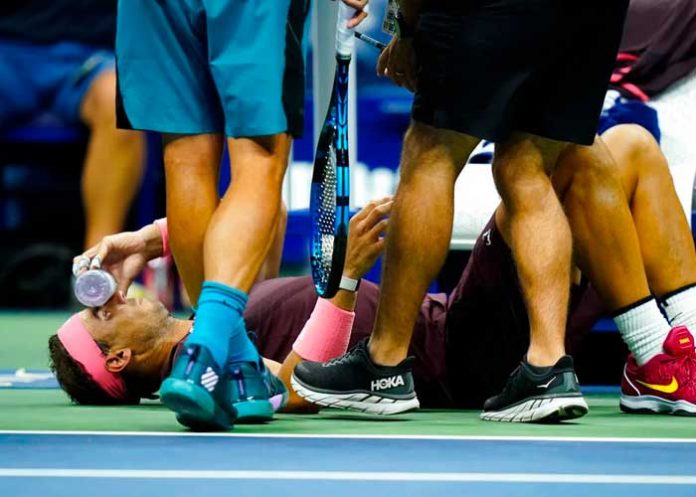 El percance se produjo en el primer punto de un juego que encontró a Nadal arriba 3-0 en el cuarto parcial. Se desplazaba hacia la derecha para devolver de revés cuando la raqueta dio en el suelo y rebotó contra su nariz.