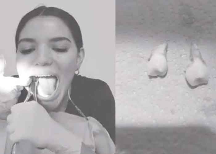 «El highlight de mi semana fue extraerme sola mis terceros molares», escribió en la descripción del video la joven, que no hizo ninguna expresión de dolor o alguna mueca de incomodidad al retirarse las dos muelas del juicio.