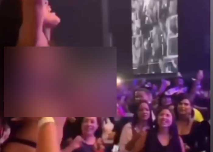 Además, la mujer gritaba y cantaba emocionada, y varios asistentes grabaron el momento que a través de redes sociales se viralizó. La mujer portaba un sexy vestido de lencería fina, pues acaparó todas las miradas de los cibernautas y todos los asistentes al concierto.